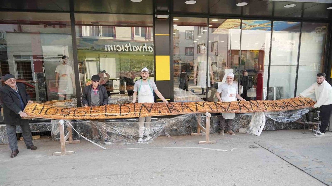 Bursa’nın Osmangazi ilçesinde 20 yıldır fırıncılık yapan Subay Özçelik, Ramazan ayının gelmesiyle en uzun pideyi hazırlamaya karar verdi. Pide için kolları sıvayan 8 kişi, 7 metre uzunluğundaki hamura çörek otu ile ’Hoşgeldin Ramazan maşallah’ yazıp fırına verdi. Yapımı yaklaşık 2 saat süren pide uzun uğraşlar sonucu streçlenerek fırın önünde sergilendi. 7 metrelik pideyi gören vatandaşlar cep telefonu ile fotoğrafını çekti.