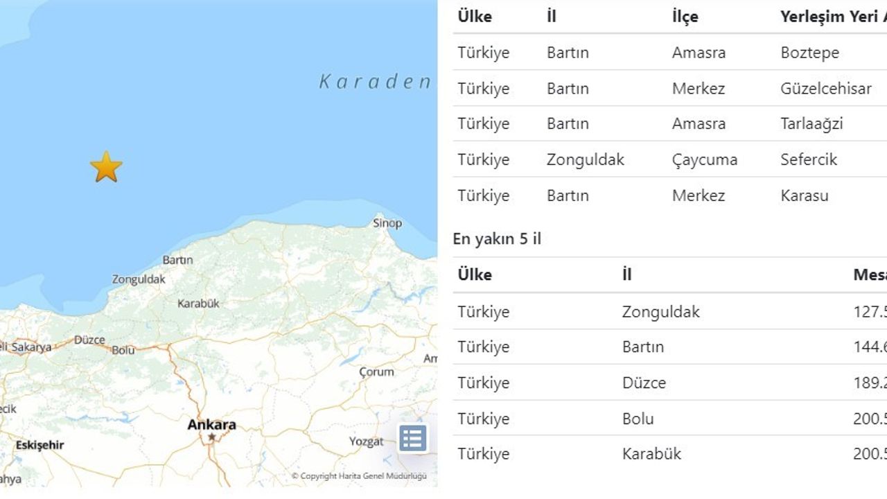 AFAD’ın açıklamasına göre Karadeniz’de Bartın’ın Amasra ilçesine 119 kilometre uzağında 4,8 büyüklüğünde deprem meydana geldi. Sakarya Gaz Sahası yakınlarında meydana gelen deprem Amasra ilçesi başta olmak üzere çevre il ve ilçelerden de hissedildi.