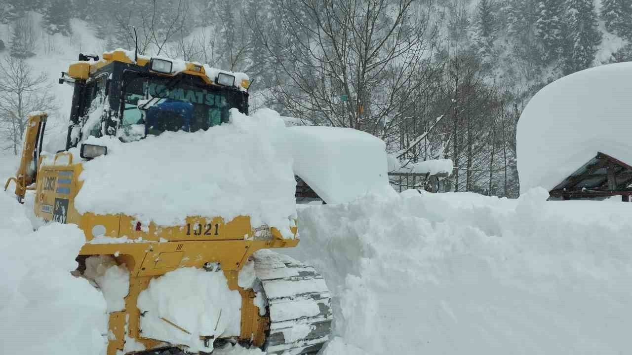 1850 rakımlı Macahel Geçidinde kar kalınlığını 3 metrenin üzerine çıkarken, çığ tehlikesi nedeniyle çalışmalar durduruldu.