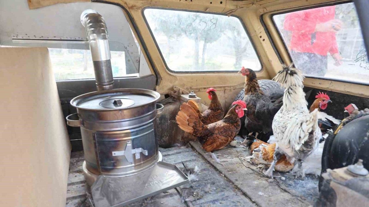 Konya’da yumurtacılık yapan vatandaş, müşterilerine giderken ’gezen tavuk’ olması için otomobili ile gezdirdiği tavuklarının üşümemesi amacıyla içerisine odun sobası kurdu. Fark edenin dönüp bir daha baktığı otomobil içerisindeki tavuklar hem müşteri geziyor hem de yumurtluyor.