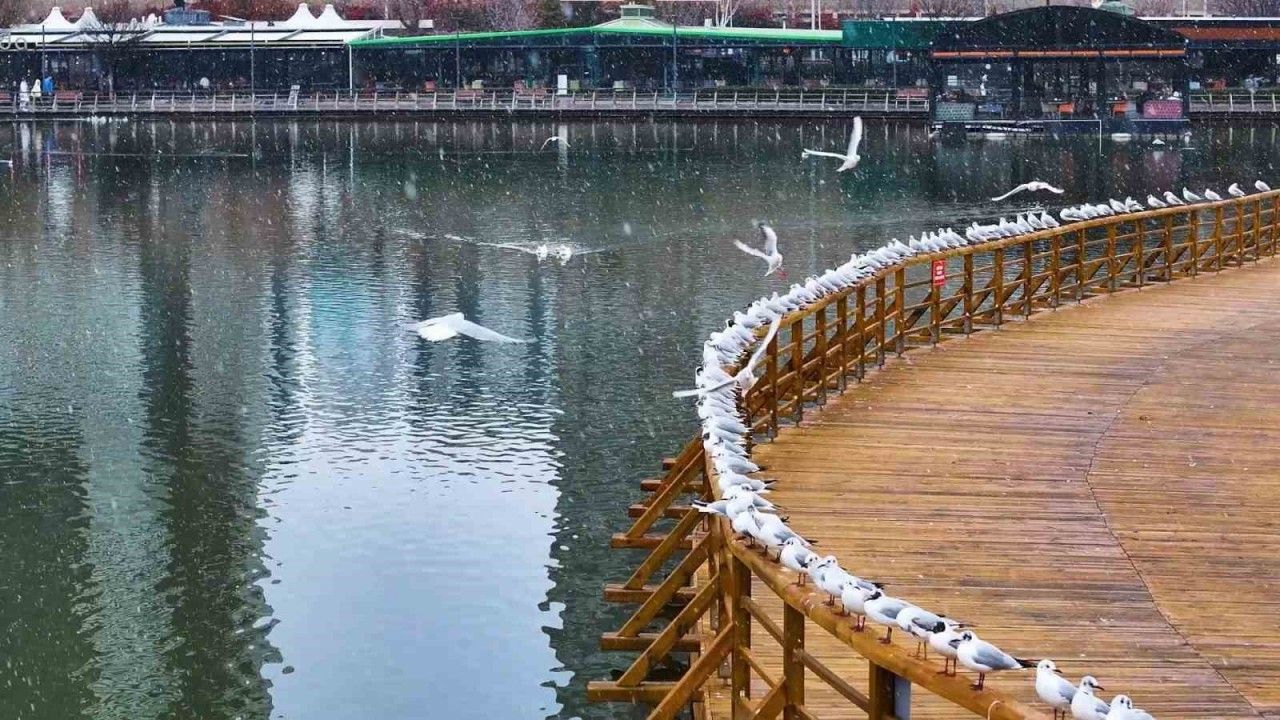Kar yağışının ardından Göksu Parkı, doğayla iç içe vakit geçirmek isteyen Ankaralıların uğrak noktası haline geldi. Martıların kış manzarasıyla buluştuğu bu anlar, izleyenlere keyifli görüntüler sundu.