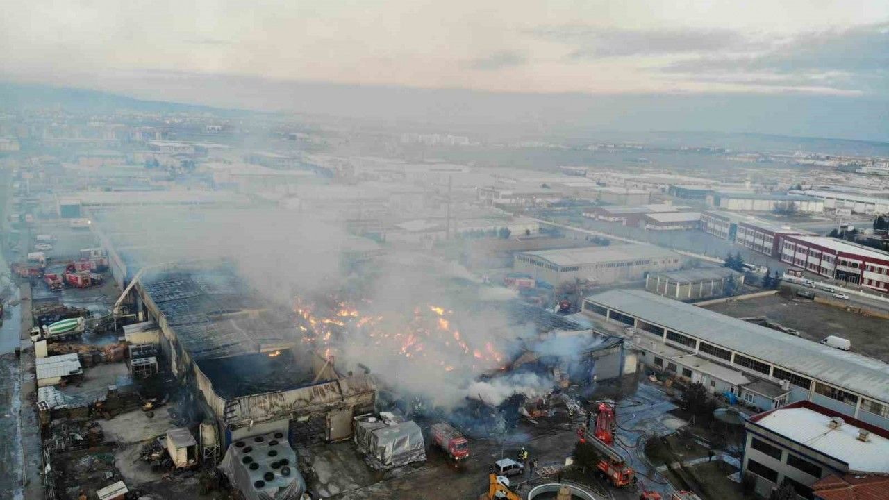 Organize Sanayi Bölgesi’nde orman ürünleri üretimi yapılan fabrikada dün akşam saat 19.40 civarında çıkan yangın 13 saatin sonunda kontrol altına alındı. 60’a yakın itfaiye aracı ve 150 personelin müdahale ettiği yangını söndürmek için ekipler yoğun çaba sarf etti. Yangın, ekiplerin müdahalesi sonrası yaklaşık 13 saatin sonunda kontrol altına alınırken, tesisin bazı yerlerinde küçük de olsa alevlerin yükselmesi felaketin boyutunu gözler önüne serdi. Yangın bölgesinde havadan çekilen görüntülerde, 13 saat geçmesine rağmen dumanların halen metrelerce yükseğe çıktığı gözlendi. Ekiplerin bölgedeki çalışmaları devam ediyor.