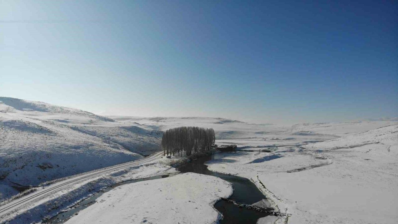 Kars’ta kış mevsimi tüm ihtişamıyla etkisini gösterirken, karla kaplı araziler arasından sessizce süzülen Kars Çayı, görenleri kendine hayran bırakıyor. Beyaz örtüyle kaplanan doğanın içinden kıvrılarak akan çay, adeta bir kartpostal görüntüsü sunuyor.