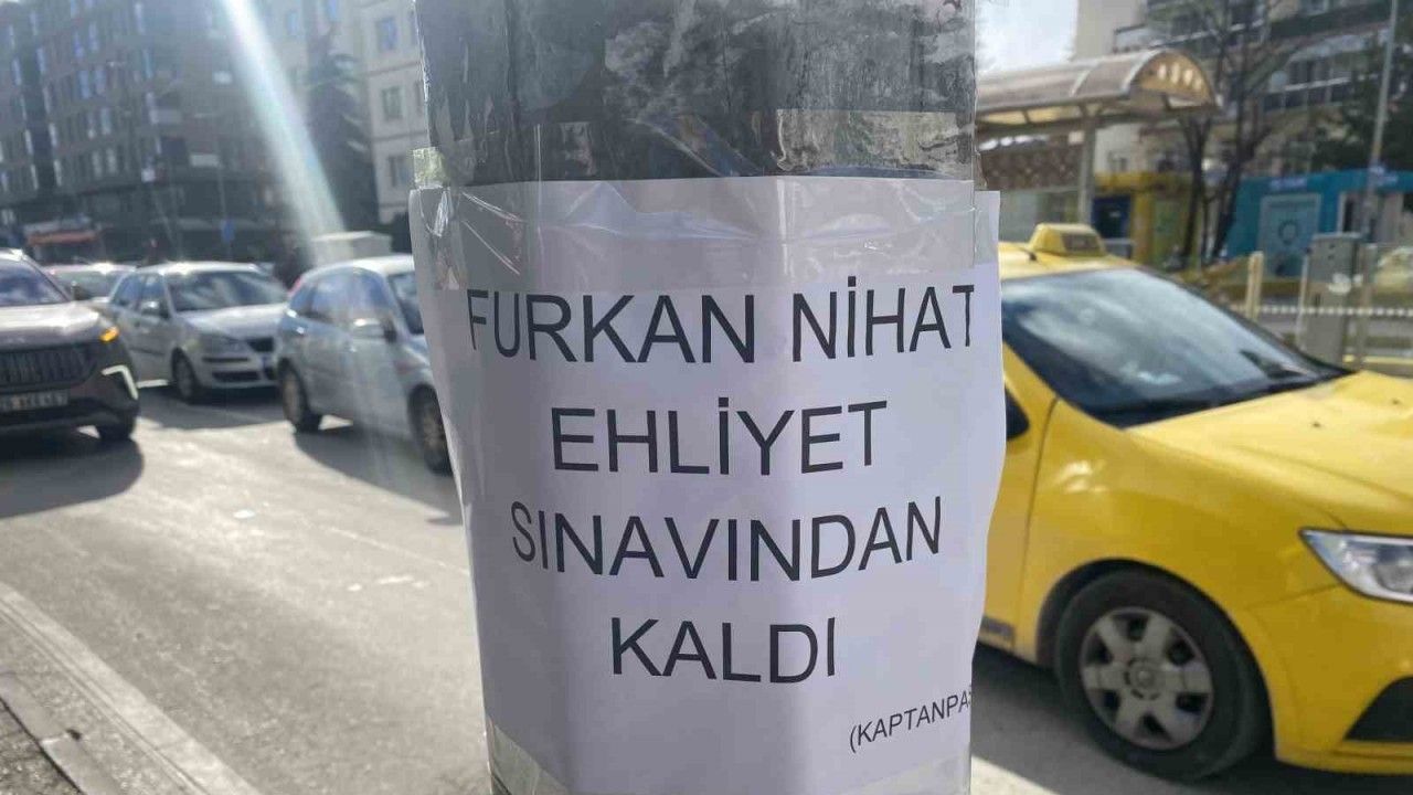 Eskişehir’de bir direğin üzerine yapıştırılan, "Furkan Nihat ehliyet sınavından kaldı" yazısı görenlerin dikkatini çekti.