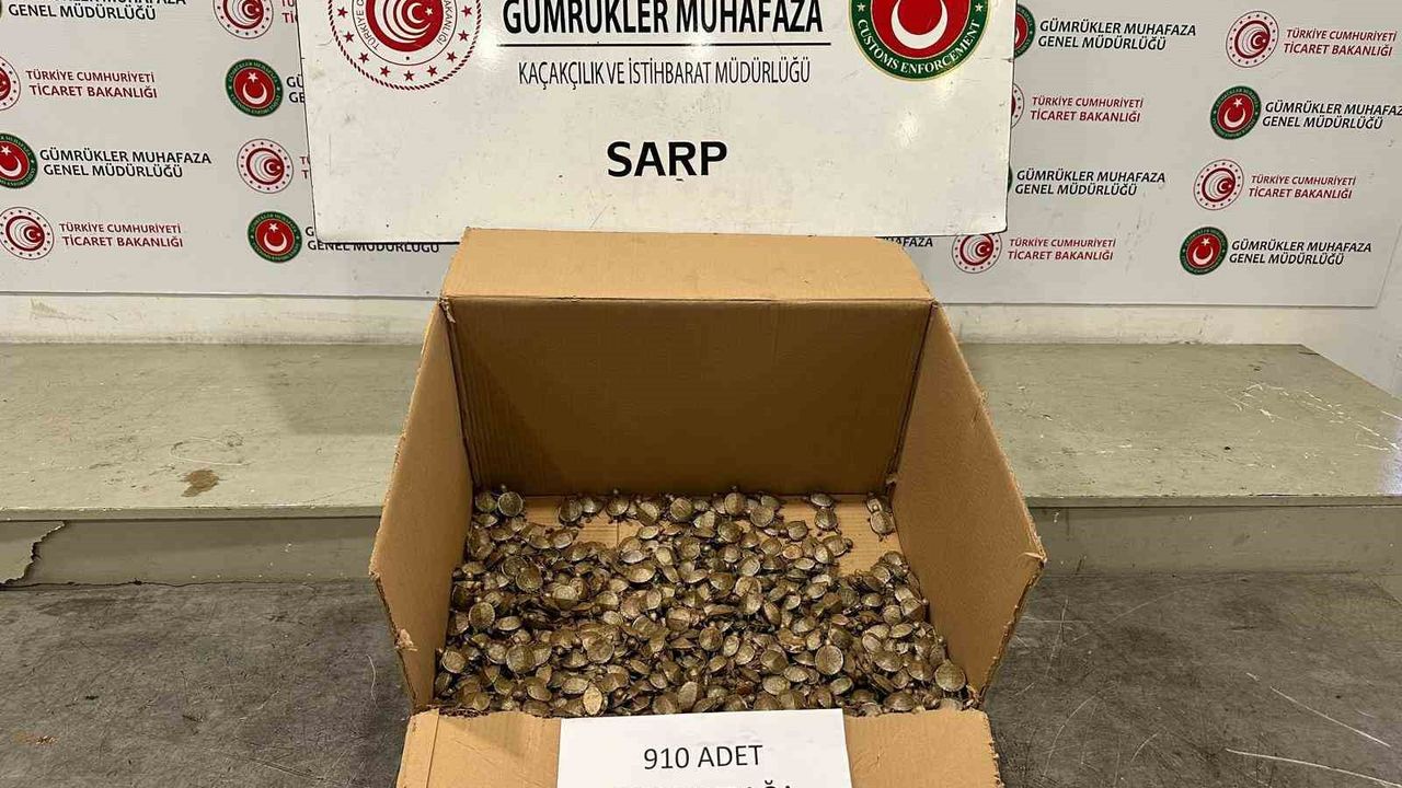 Sarp Gümrük Muhafaza Kaçakçılık ve İstihbarat Müdürlüğü ekiplerince gerçekleştirilen detaylı aramalarda değeri 655 milyon Türk Lirası olan 910 adet su kaplumbağası yurda yasa dışı yollardan sokulmaya çalışılırken ele geçirildi.