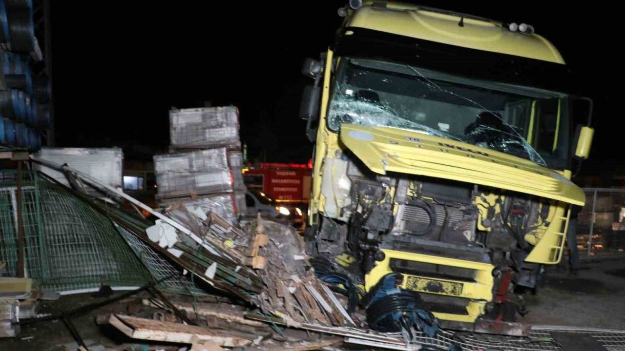 Amasya’nın Taşova ilçesinde inşaat malzemeleri satılan bir iş yerine dalan tır kameraya yansıdı. Kazada, iş yerinin önünde satışa sunulan ürünler, palet üzerinde yüklü fayanslar ve inşaat malzemeleri çevreye saçıldı.