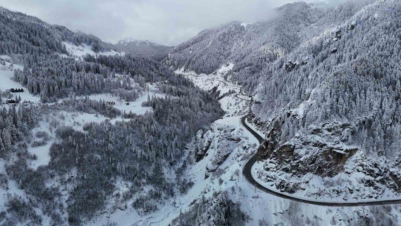 Yeni Zigana Tüneli’nin açılmasıyla birlikte özellikle eşsiz manzaraları seyretmek isteyen vatandaşların kullandığı Zigana Dağı Geçidi kar altında sunduğu kartpostallık görüntülerle doğa tutkunlarını ağırlıyor. Tarihi İpek yolu üzerinde yer alan bin 820 metre rakımdaki eski Zigana Tüneli’nin de bulunduğu zirve ve dağ silsilesi çam ağaçları ile estetik bir görüntü sunuyor. Dron ile havadan çekilen görüntüler doğanın en etkileyici görsellerini bir arada topluyor.